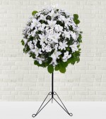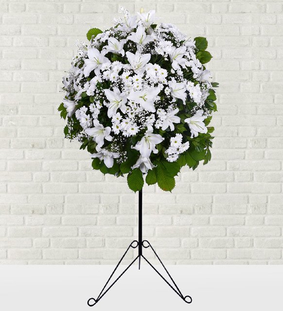 50 adet Krizantem, 19 adet Lilyum,11 adet cipsofilya ve yeşilliklerle hazırlanan ferforje çiçek aranjmanı.