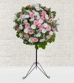 30 adet beyaz gerbera,20 adet pembe gerbera,11 adet cipsofilya ve yeşilliklerle hazırlanan ferforje aranjman.