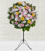 30 adet beyaz gerbera,20 adet pembe gerbera, 10 adet sarı gerbera,11 adet cipsofilya ve yeşilliklerle hazırlanmış ferforje aranjman.